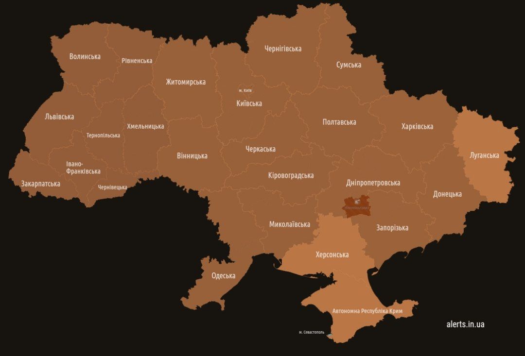 У низці областей України працює ППО. Про вибухи повідомляли на Миколаївщині, Дніпропетровщині, Київщині, Вінниччині, Черкащині та Житомирщині.