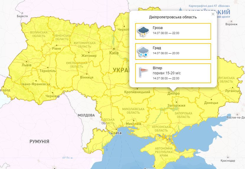 14 липня по всій території України вируватиме негода. Не обділить увагою вона і Дніпро.