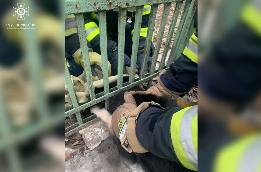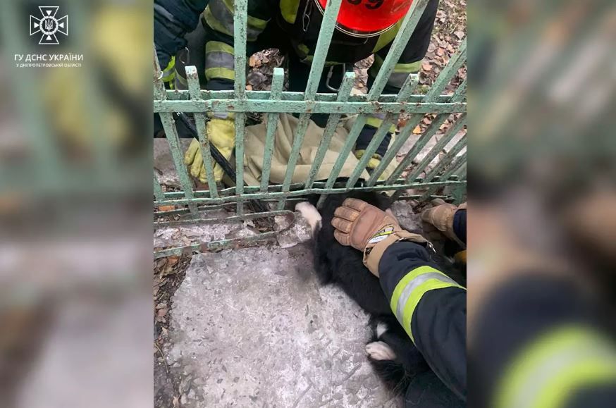 Іноді кажуть, що коти це рідина, адже ці хвостаті можуть протиснутися в будь-який отвір. З собаками так не працює. Допитливі пси часто намагаються пробратися на території, огороджені парканом. Майже завжди їм вдається це зробити, але іноді пухнастики опиняються у пастці. Так сталося і з чотирилапим із Кам'янського, який застряг між металевих трубок огорожі.