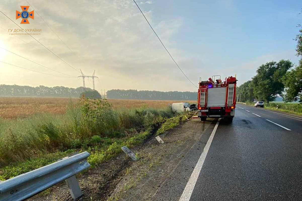 Поблизу П’ятихаток водій мікроавтобуса не впорався з керуванням та з’їхав у кювет: його діставали рятувальники