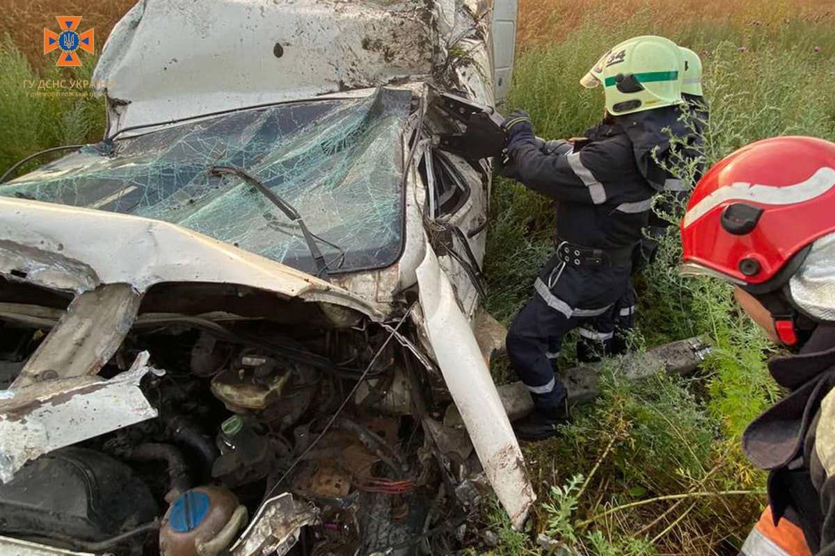 Там водій вантажного мікроавтобуса Volkswagen LT 35 не впорався з керуванням та з’їхав у кювет. Внаслідок ДТП водія заблокувало в пошкодженому авто.