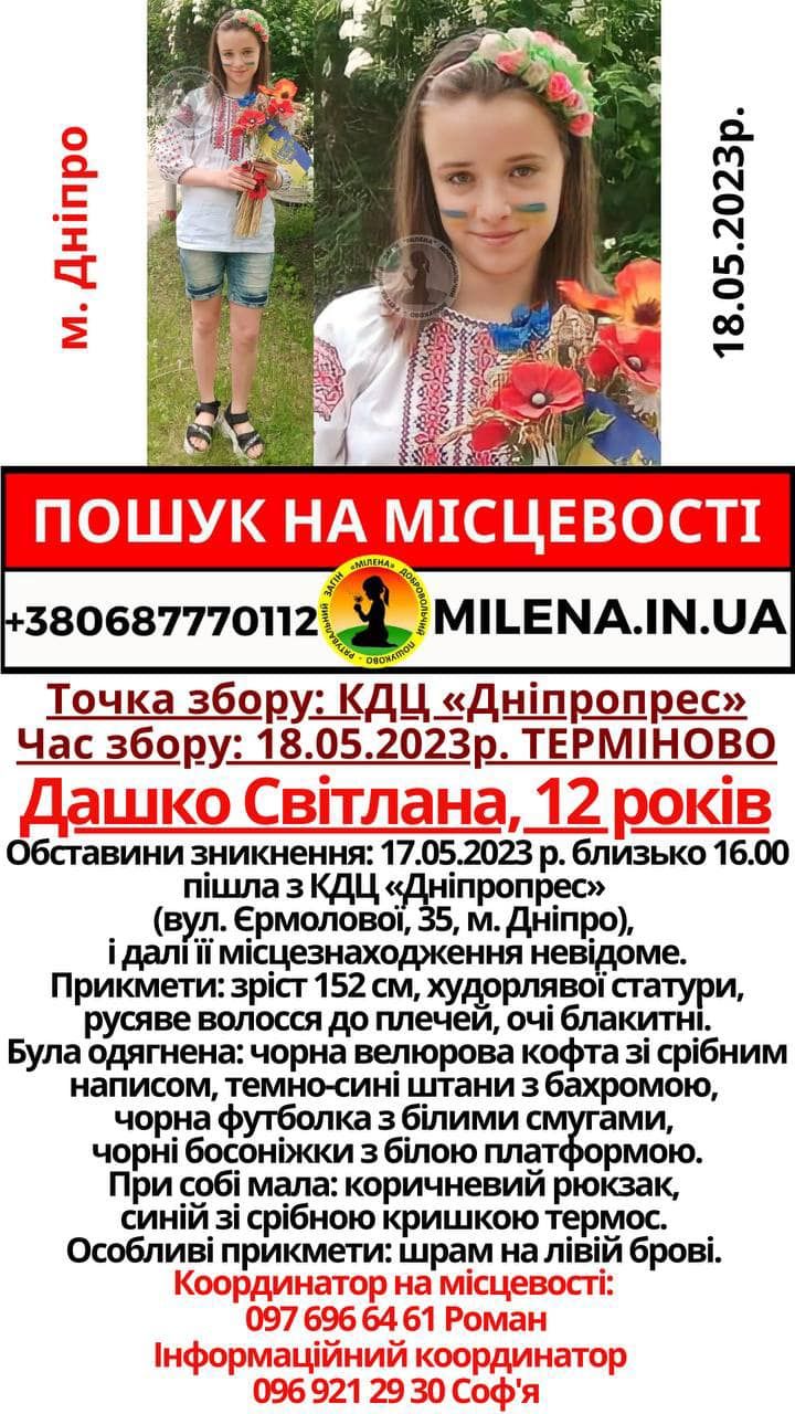 У Дніпрі розшукують безвісти зниклу 12-річну Світлану Дашко.