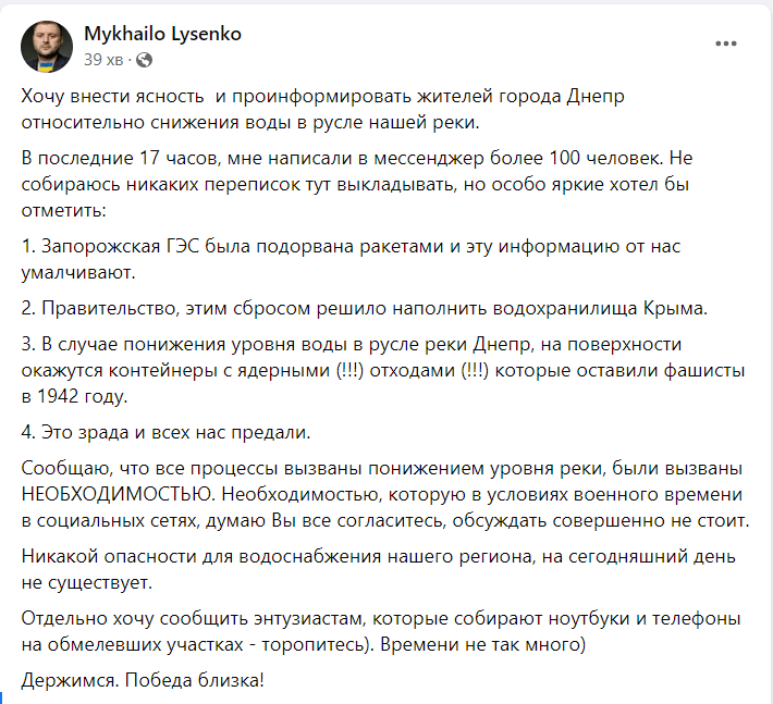 Ситуацію прокоментував заступник міського голови Дніпра Михайло Лисенко.