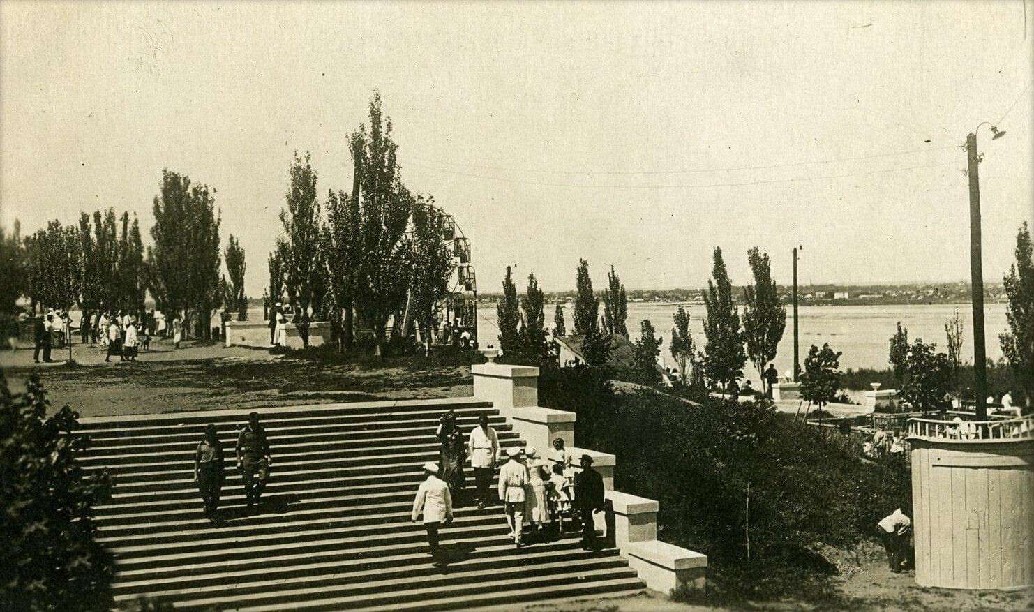 На фотографіях майже 100-річної давнини незвичайно виглядають сходи в Парку Шевченка. Немає звичних стін, покинутого картингу і порожнього ресторану поряд.