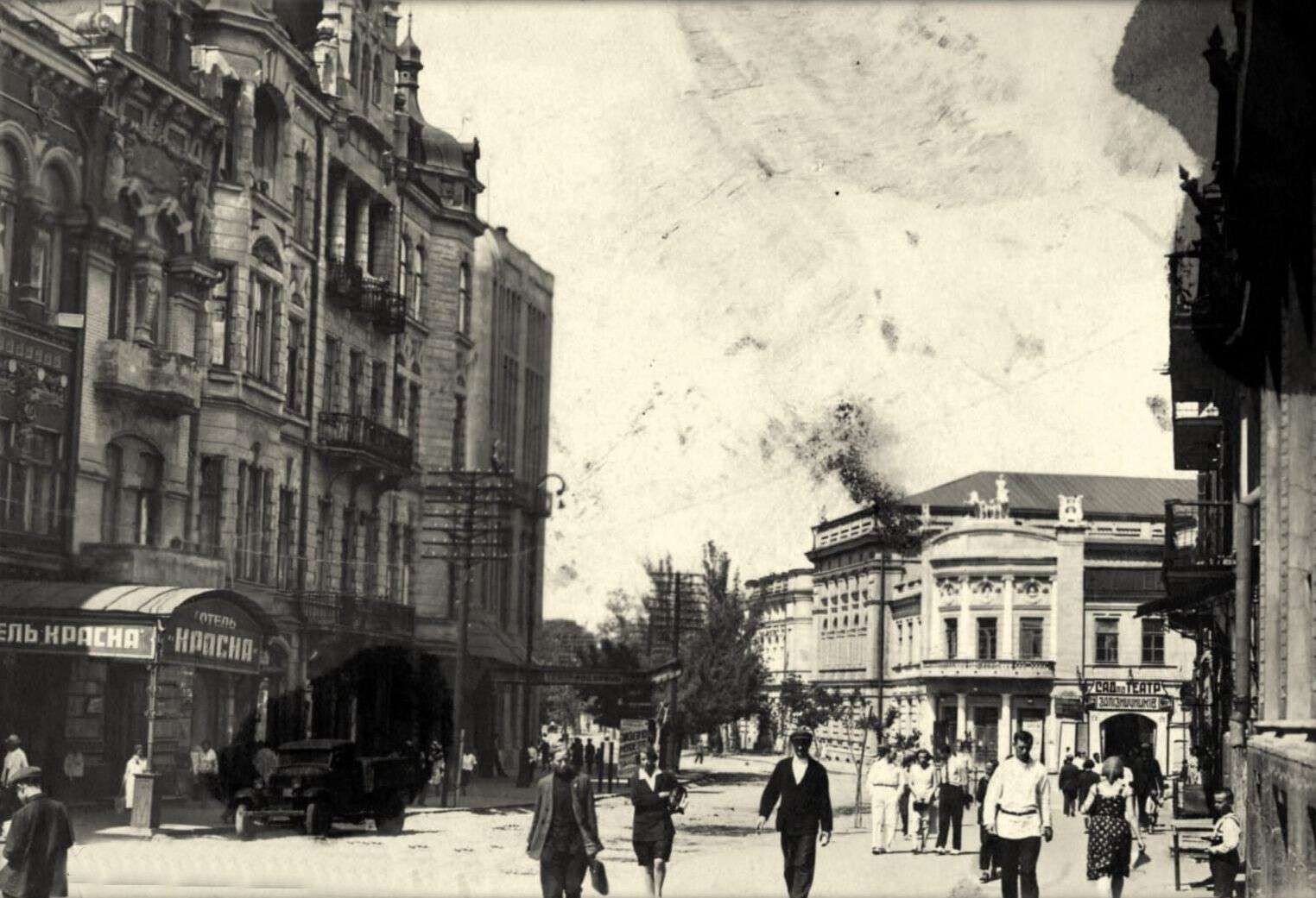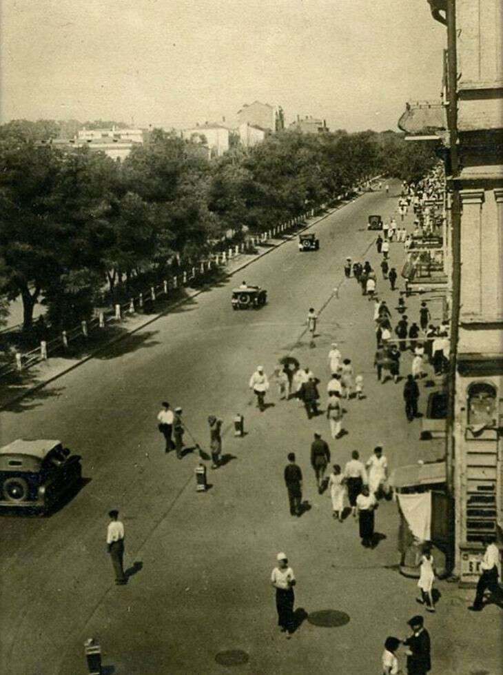 У 1930-х роках проспектом Яворницького вже їздили автомобілі, правда не в такій великій кількості як зараз.