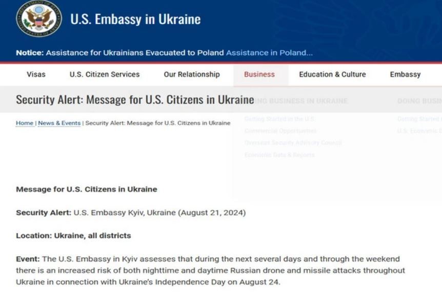 У США заявили, що мають інформацію щодо нарощування Росією зусиль задля завдання як нічних, так і денних атак дронами та ракетами по всій території України. У посольстві зауважили – це може відбутися перед святкуванням Дня Незалежності України 24 серпня.