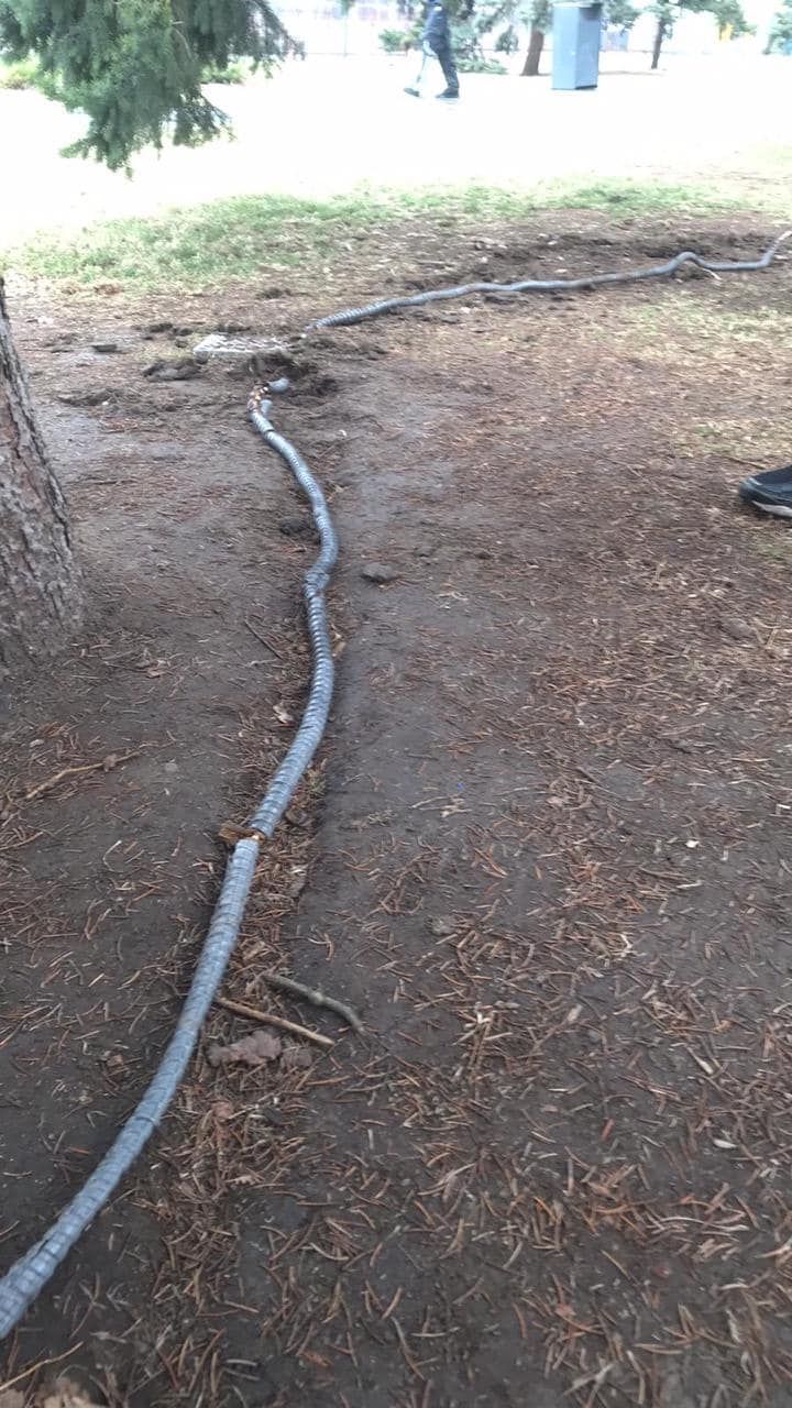 У результаті - потрощені тренажери, поламані дерева, вирвані та пошкоджені елементи системи поливу та освітлення.