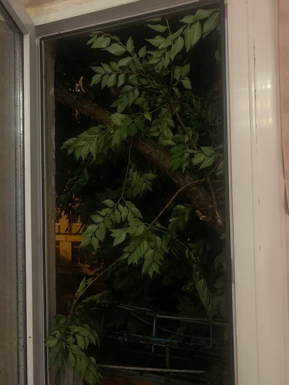 Містяни повідомляють про десятки понівечених через дерева машин. Вітрюган був настільки сильний, що вирвав їх з корінням.