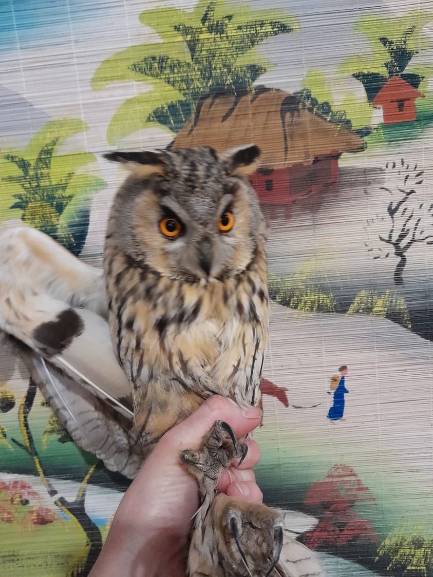 Волонтерка зазначила, що лапки цілі, явних ознак ЧМТ в птаха немає, але ноги працюють погано. Вона підозрює, що в пернатого точно є інфекція.
