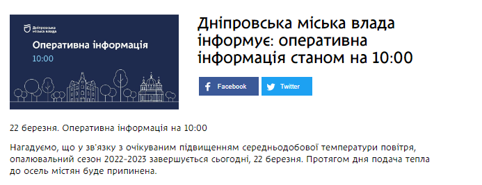 Крім того, заступник міського голови Михайло Лисенко повідомляв, що мешканці Дніпра мають чималу заборгованість перед теплопостачальними підприємствами міста. І передчасне завершення опалювального сезону дозволить заощадити, адже війна ще не закінчилась.