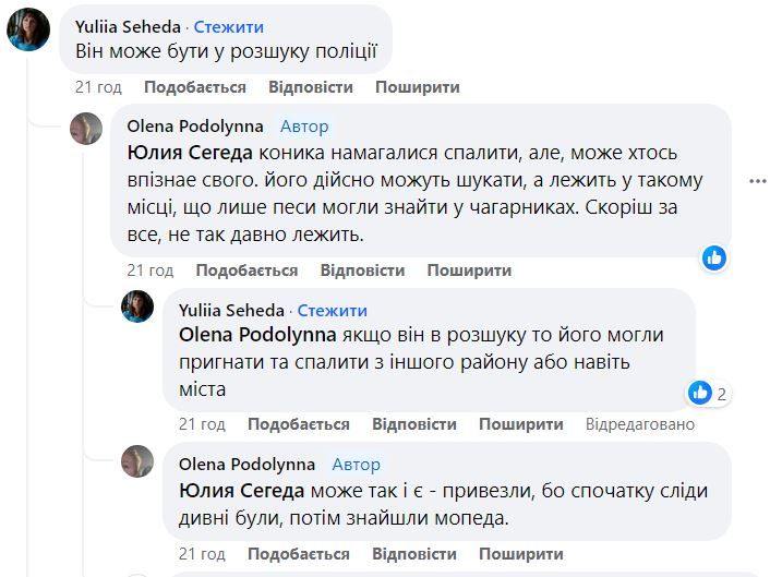 У коментарях припустили, що байк може розшукувати поліція, а спалили його, аби замести сліди.
