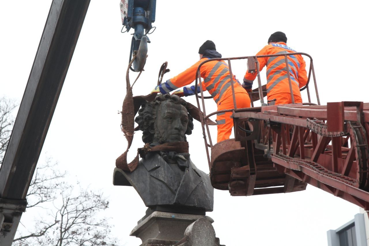 Шістнадцятого грудня у місті провели черговий демонтаж пам’ятників. Цього разу демонтували пам’ятники Володі Дубініну та Олександру Пушкіну.