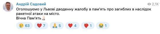 Крім того, у місті оголосили дводенну жалобу в пам'ять про загиблих внаслідок ракетної атаки.