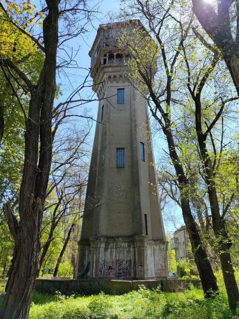 Водонапірна вежа, яка зараз територіально знаходиться у студентському містечку колишнього інституту інженерів транспорту, була побудована у 1930-х роках. Тоді на території міських дач почали будувати виш та прилеглі до нього будівлі бібліотеки, спортзали, гуртожитків. Тоді ж тут було споруджено і водонапірну вежу. Вона мала забезпечувати водою нагірну частину міста, зокрема студентське містечко. Згодом потреба у ній відпала.