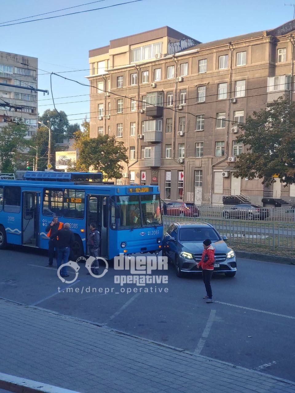 Сьогодні, 12 жовтня, у Дніпрі на проспекті Олександра Поля сталася аварія - там не розминулися тролейбус №1 та іномарка.