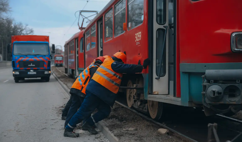 Але рух трамваїв за цим маршрутом тимчасово призупинено. Також затримуються трамваї маршруту №16.