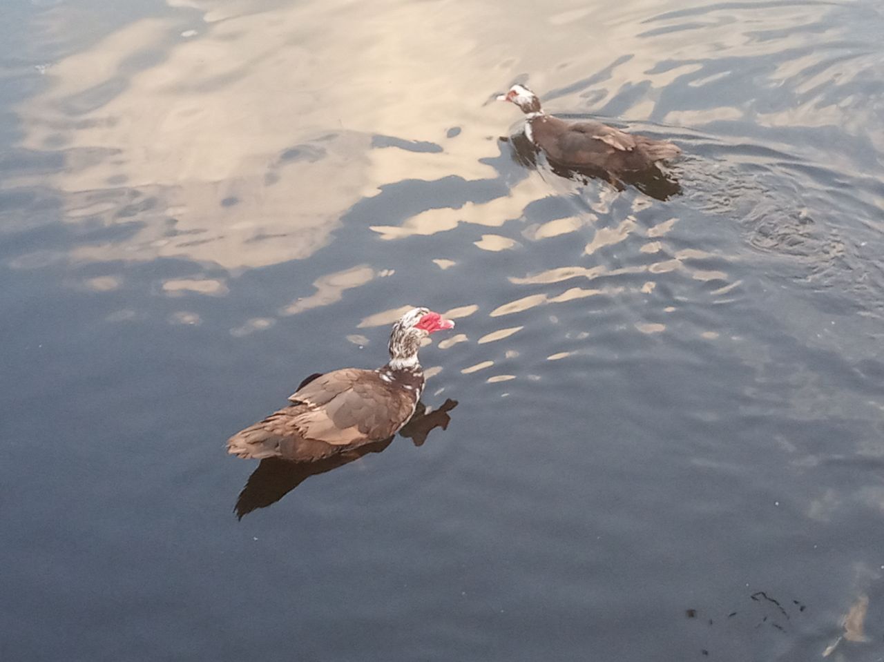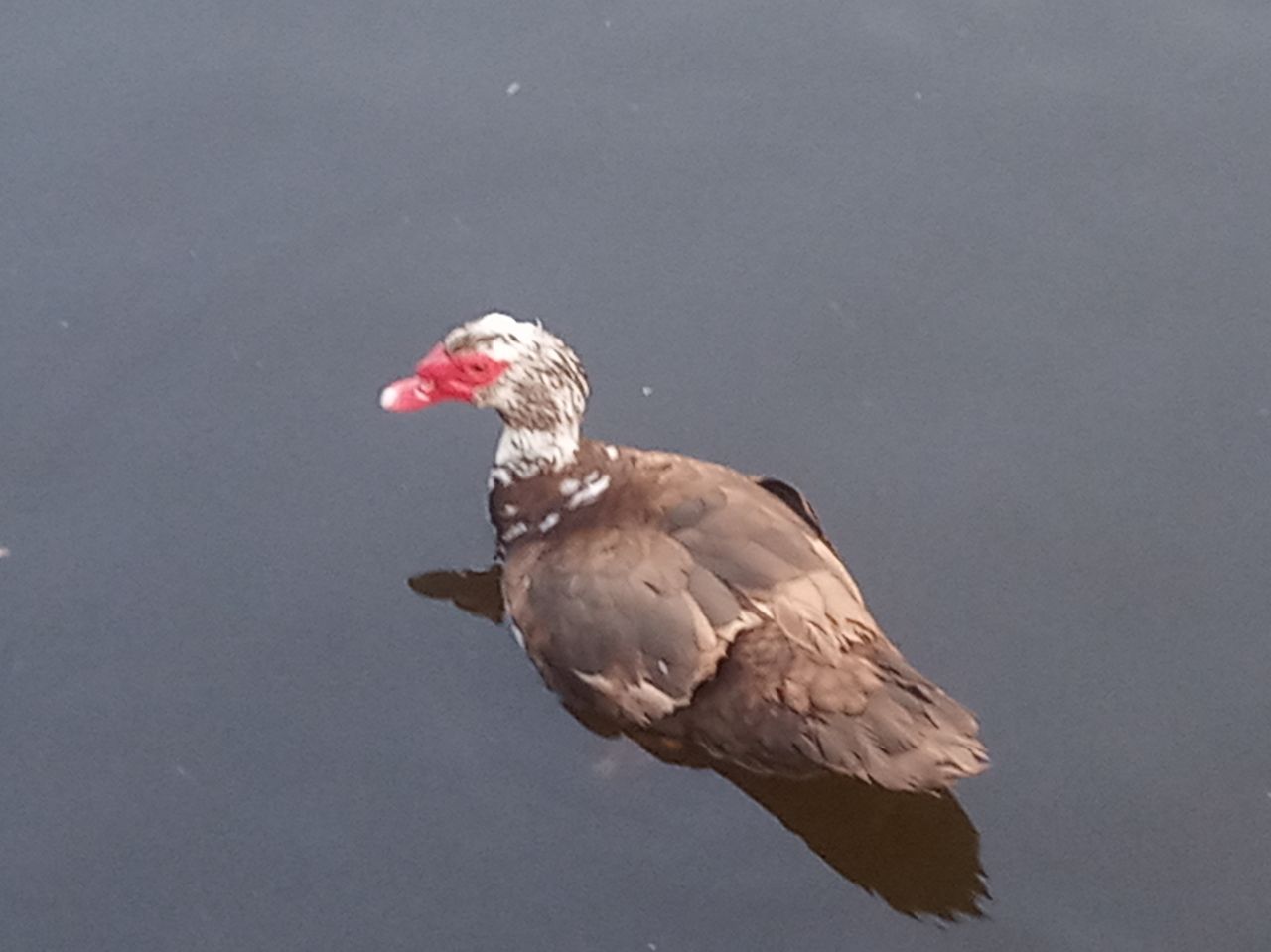 А це мускусна качка або індо-качка - один із різновидів домашньої водоплавної птиці. Популярна порода серед птахівників, адже вони самі насиджують і вирощують потомство, прекрасно відгодовуються на природних пасовищах.