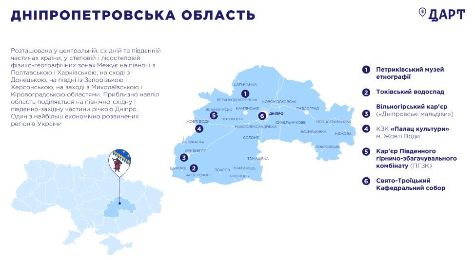 Так, туристичними магнітами Дніпропетровщини визнали: