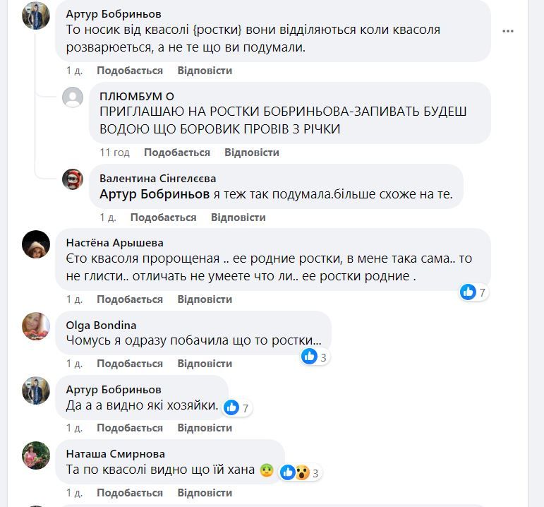 То носик від квасолі - ростки. Вони відокремлюють, коли квасолю розвалюється, а не те що ви подумали, - зазначили в коментарях марганчани.