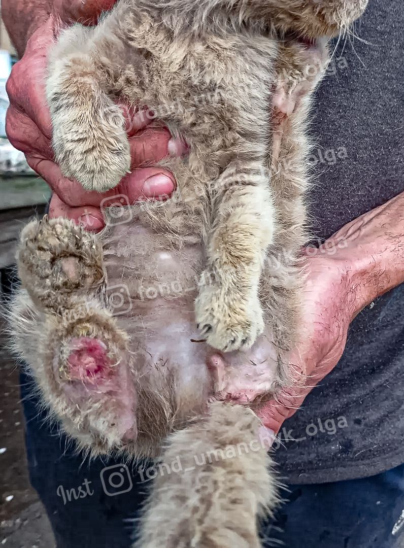 Ймовірно, котика залишили на вулиці, а потім побили, адже він весь у ранах та подряпинах.