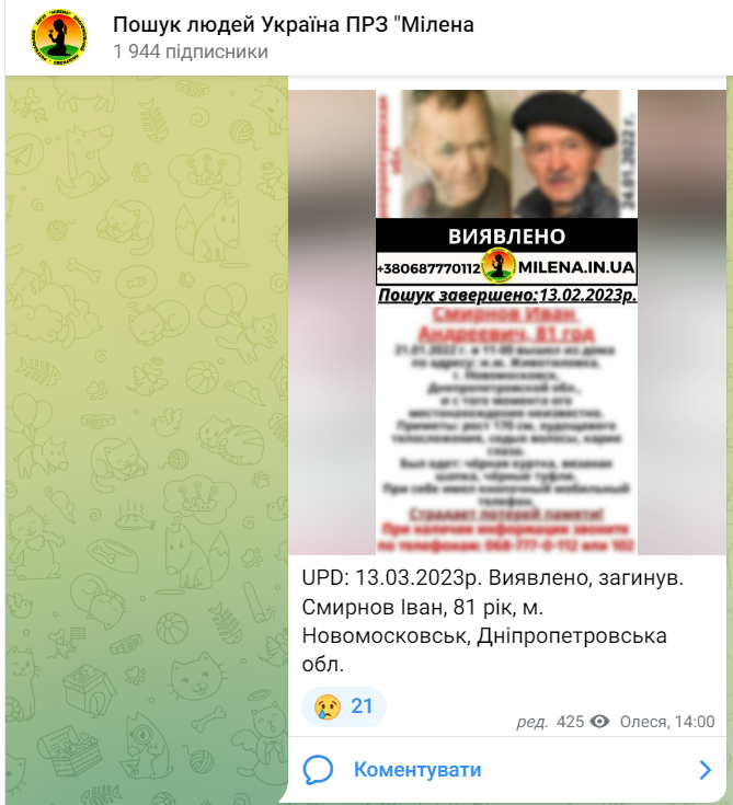 Зазначається, що 22 січня 2022 року чоловік пішов із дому у Новомосковську і більше його ніхто не бачив. Пенсіонера оголосили у розшук.