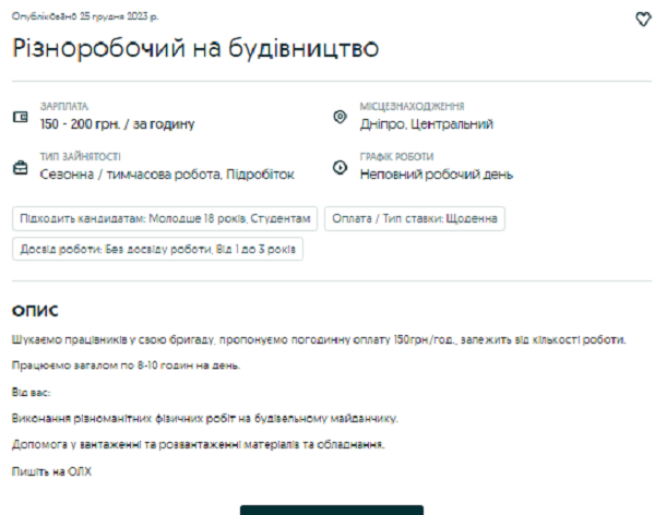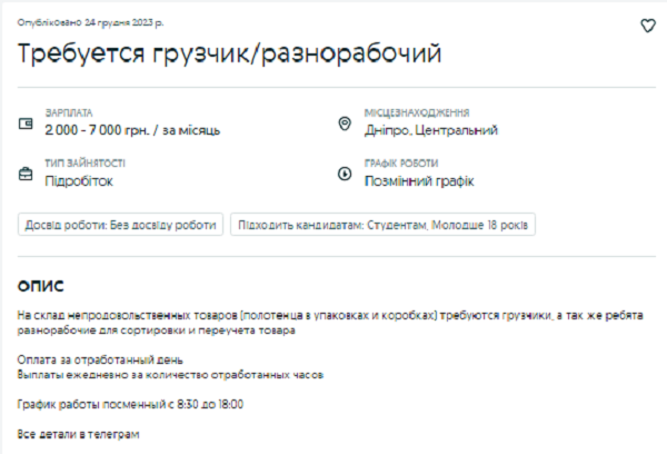 Журналісти dnepr.info зібрали добірку вакансій із зарплатами, де певну суму працівник отримує після кожного трудового дня.