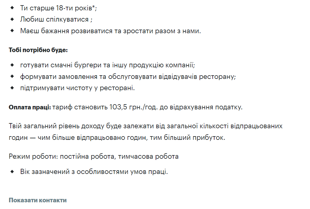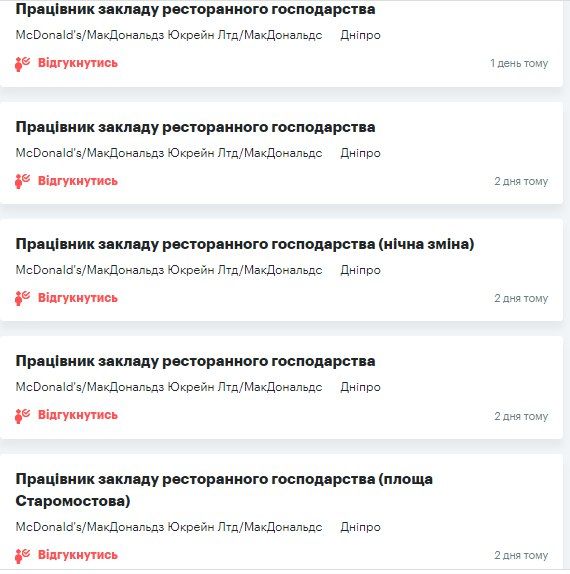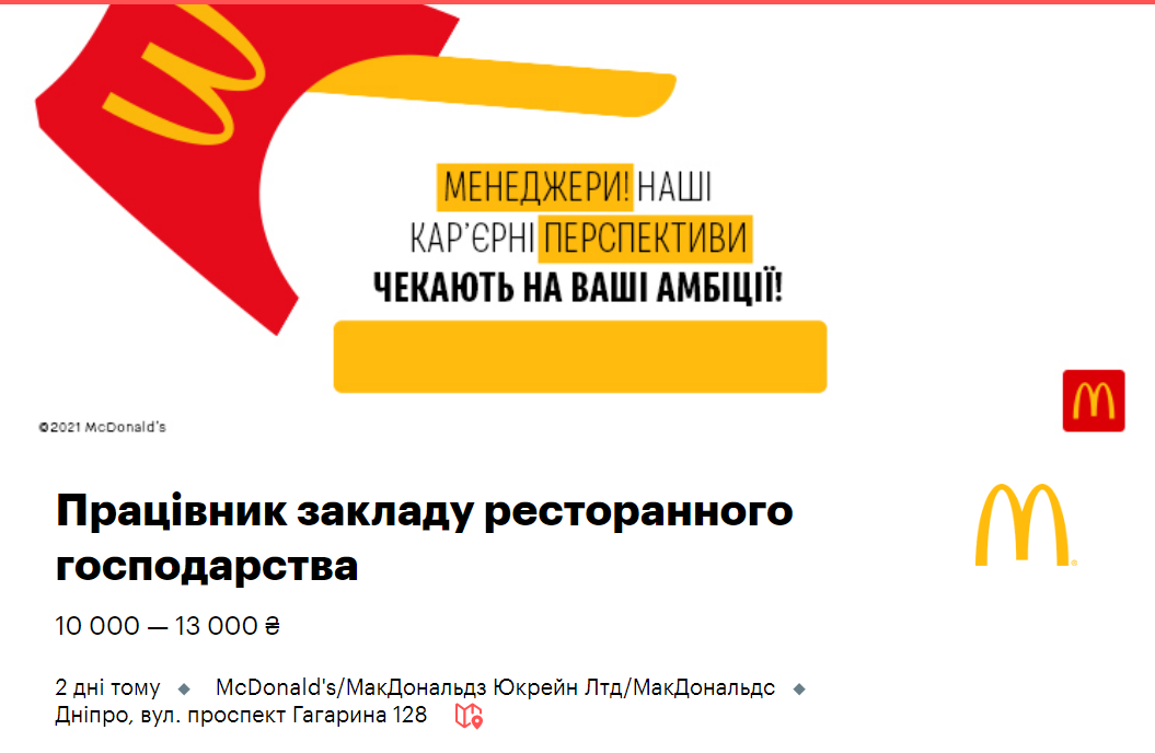 А ось нещодавно на сайті пошуку роботи з'явилися вакансії від Mcdonalds.