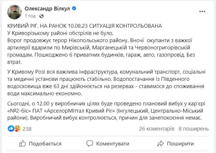 Сьогодні, 10 серпня, у Кривому Розі пролунає вибух, проте підстав для паніки немає - він виробничий.