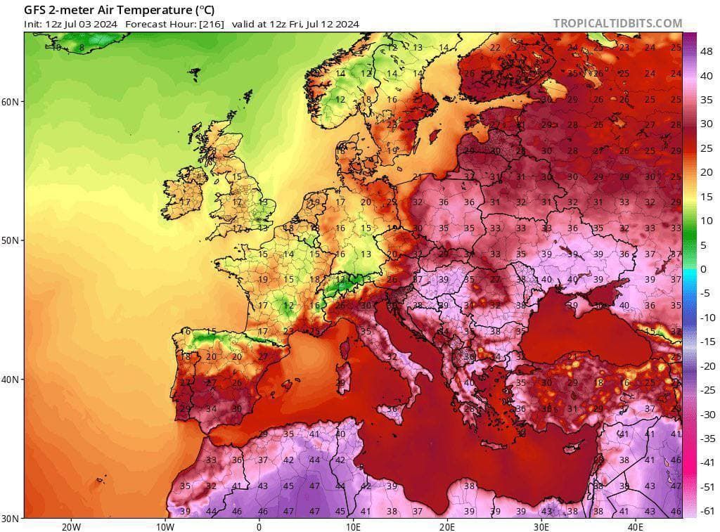 Згідно даних, вказаних на порталі Tropical Tidbits, наступного тижня, з 8 липня, в Україні температура повітря доходитиме позначки 41°С. Раніше ми писали, що цього літа Україна буде однією з найспекотніших країн у Європі.