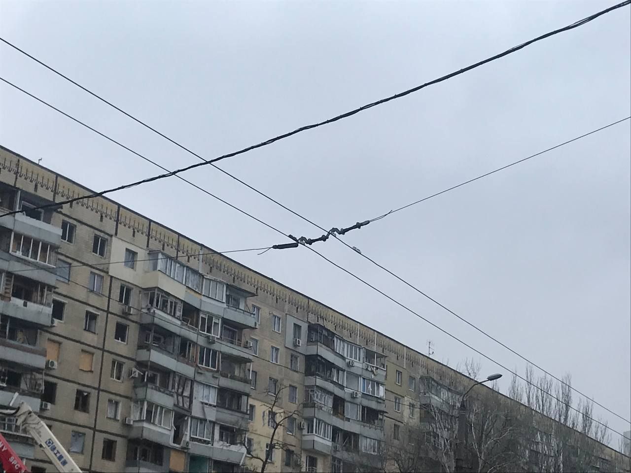 У будинку, де проживали понад 1000 людей, знищено 236 квартир. Крім того, вибуховою хвилею було пошкоджено транспортну інфраструктуру: контактну мережу тролейбуса, зупинку, світлофор. Комунальники вже почали їхнє відновлення.