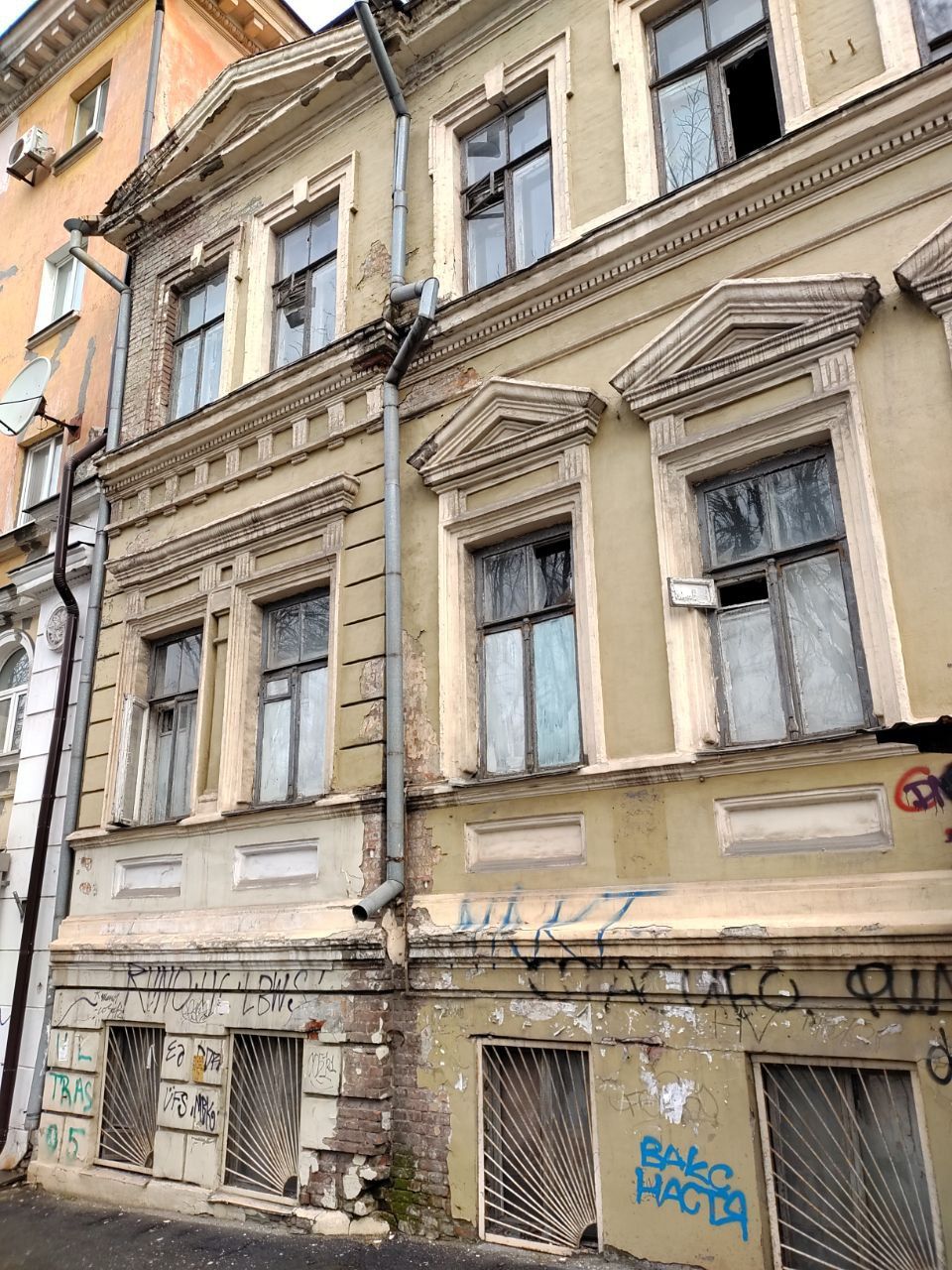 Будинок заввишки два з половиною поверхи була побудованау місті наприкінці 1890-х років. Фасад її досі прикрашає ліпнина, правда подекуди вона виглядає неабияк «зношеною». На подвір'ї будівлі є прибудови до будинку, але підійти до них складно – прохід між будинками зачинено на залізну браму.