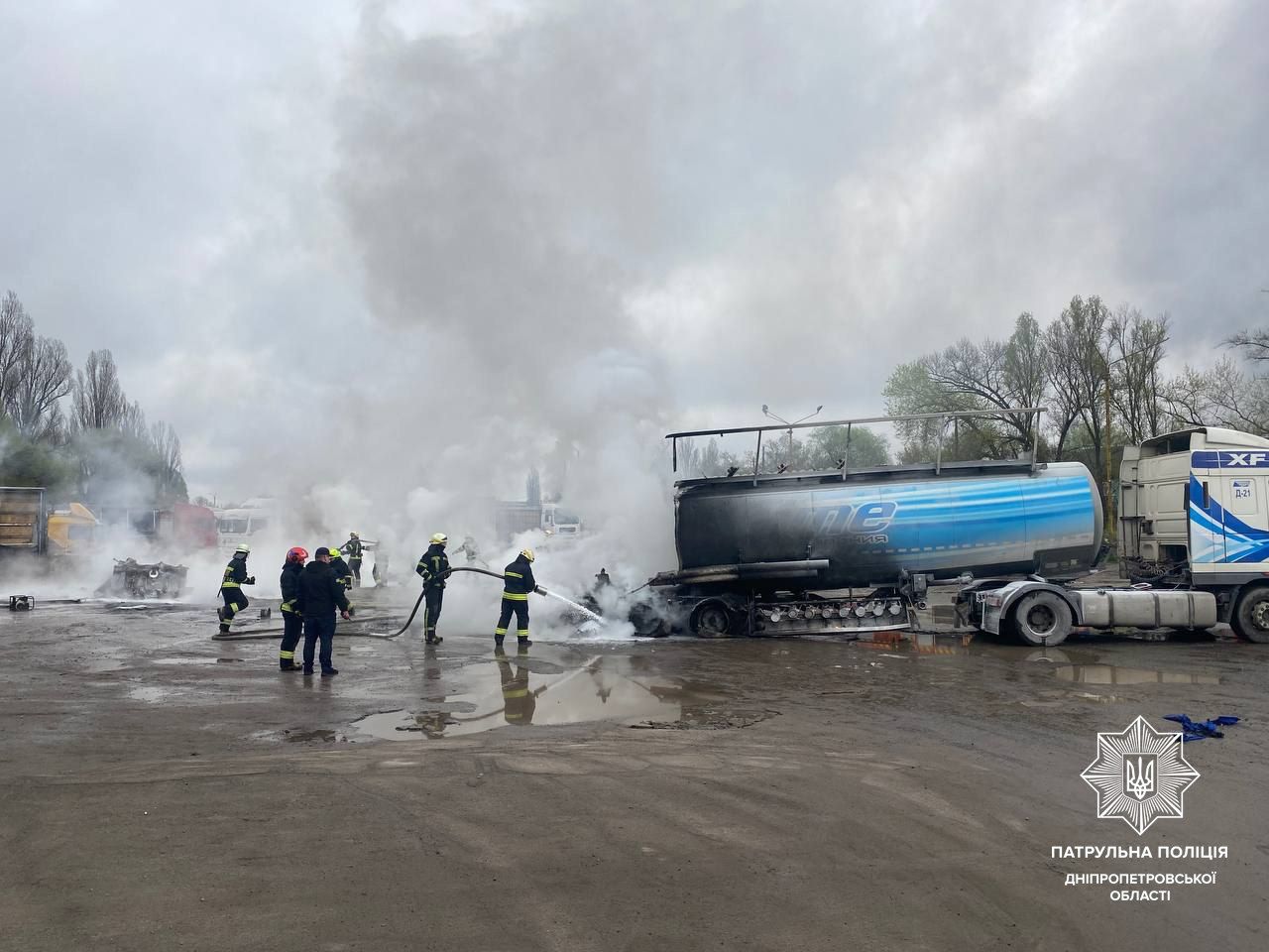 upd: Як повідомили в патрульній поліції Дніпра, сьогодні зранку на вулиці Береговій на території АТП сталася пожежа. Загорілася вантажівка з дизпаливом. Вогонь також перейшов на ємність АЗС. Патрульні та екіпаж ДСНС оперативно прибули на виклик. На щастя, ніхто не постраждав. Рятувальники ліквідували займання.
