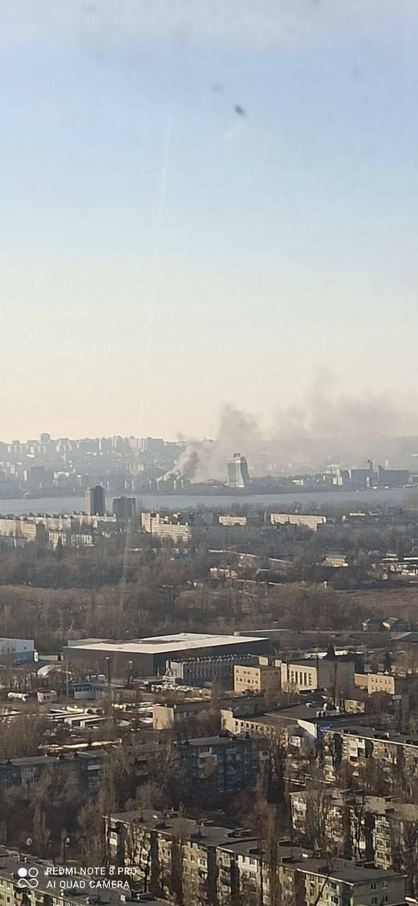 Дим видно навіть з лівого берегу, а вулиці поблизу осередку займання затягнуло густим димом.