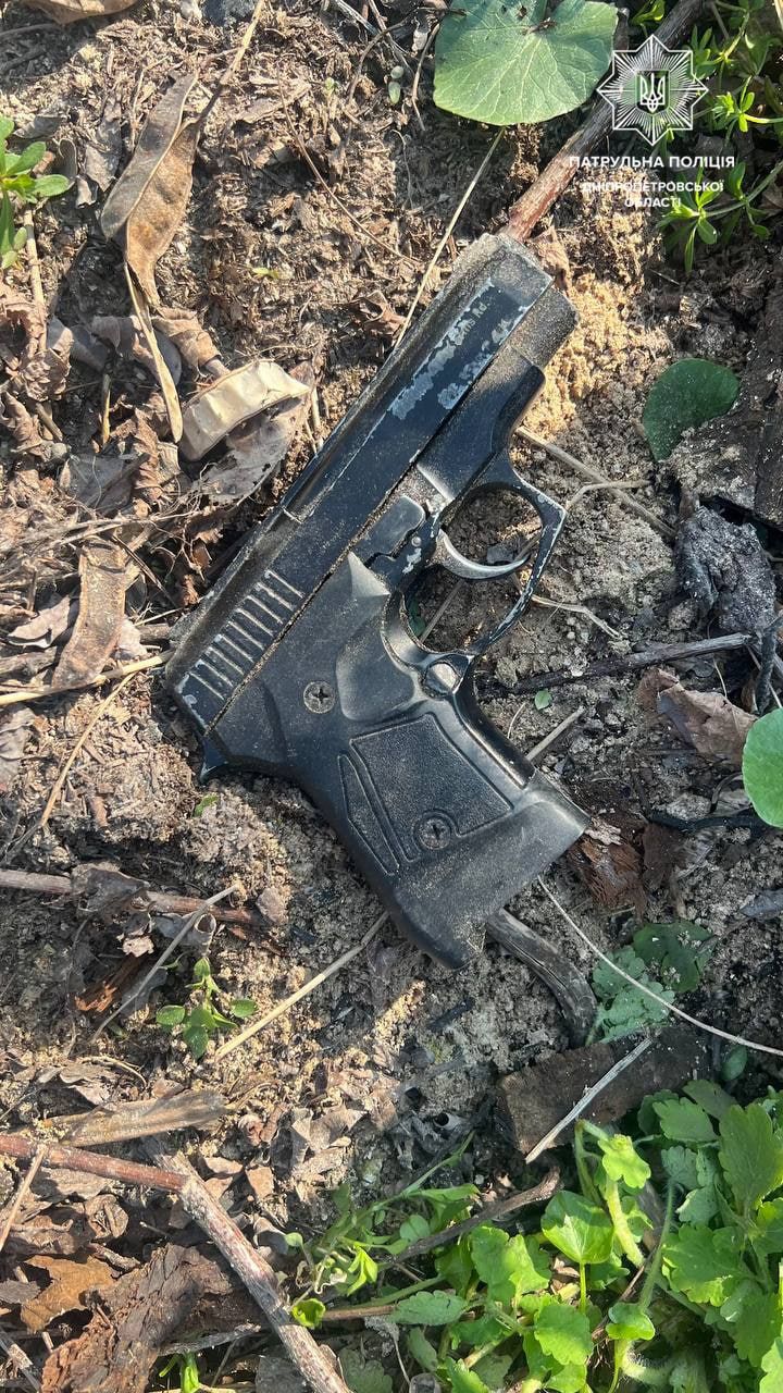 Вказаного чоловіка затримали. Патрульні обстежили прилеглу територію і виявили гільзу, а в лісосмузі неподалік сам предмет, схожий на пістолет, з якого, ймовірно, стріляв громадянин.