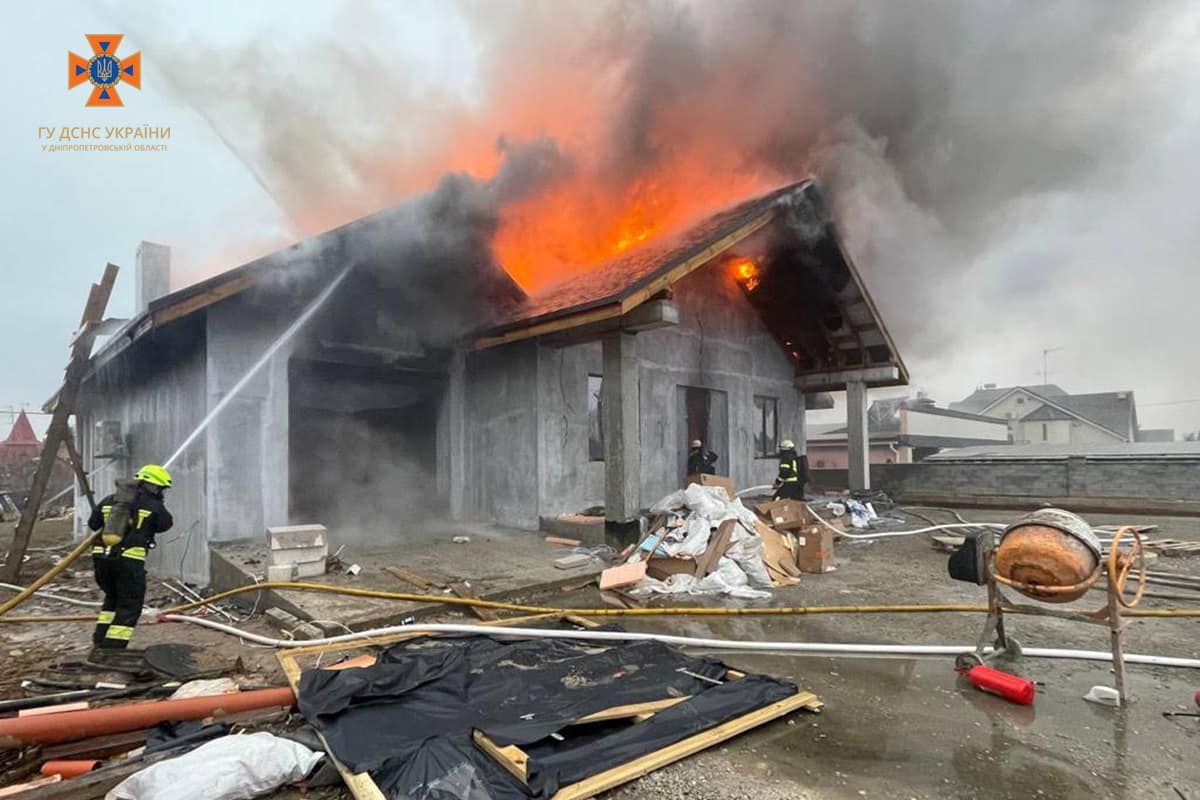 Вогонь знищив будівельні матеріали, дах та перекриття будинку, пошкодив сонячні панелі на сусідньому будинку. Загальна площа пожежі склала 400 кв. м.