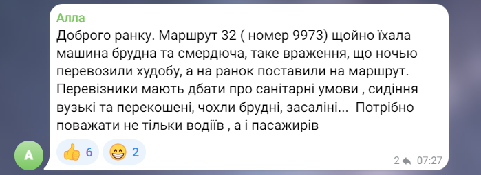 Таке враження, що вночі перевозили худобу, а на ранок поставили на маршрут, - зазначила містянка.