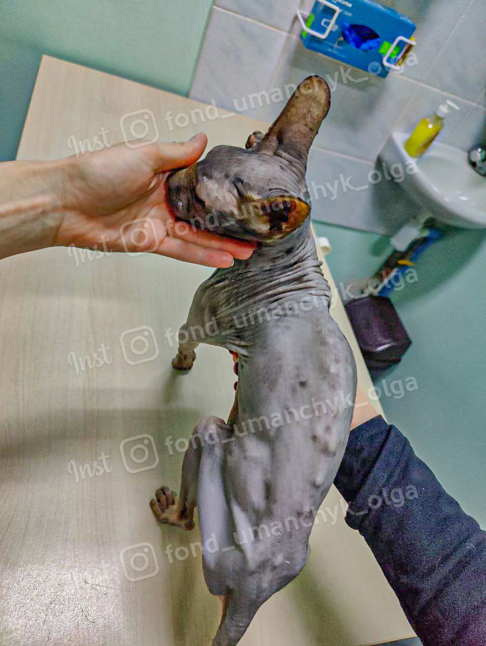 За словами зооволонтера міні-притулку "Ми за право на життя" Ольги Уманчик, породистого котика знайшли на вулиці. Сфінкс Кексик сильно виснажений та схожий на живий скелет. Наразі не зрозуміло, яка хвороба висмоктує життя з бідної тварини. Підозрюють онкологію або проблеми з кишківником.