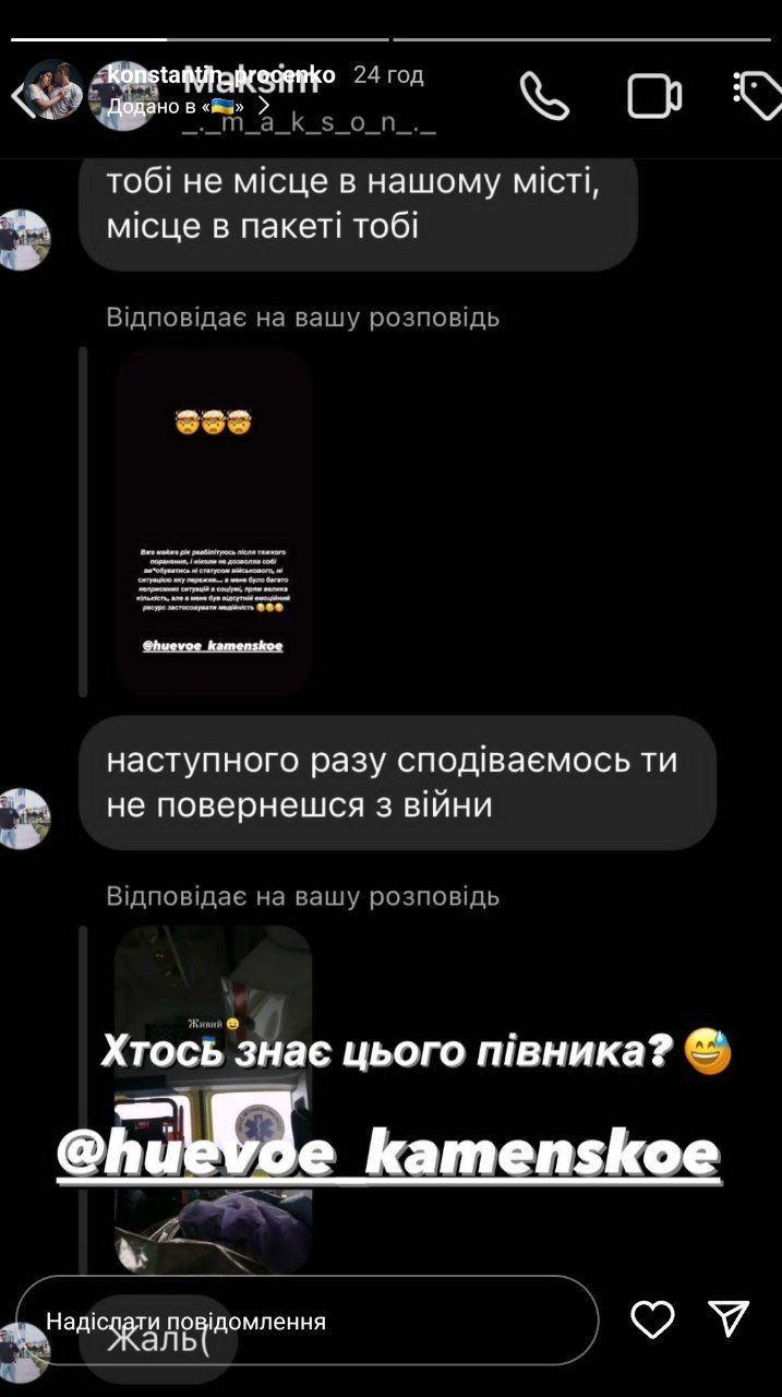 Про цю ситуацію Костянтин розповів у своїх соцмережах, після чого на нього накинулися захисники дівчат, які побажали військовому повернутися додому "в пакеті".
