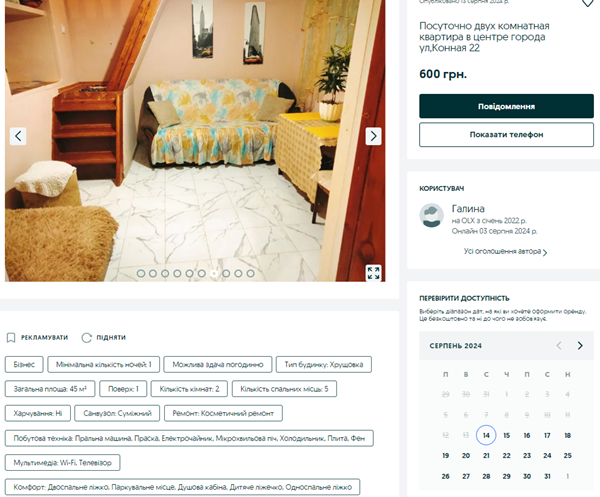 За 600 грн за добу в Одесі можна винайняти двокімнатну квартиру в центрі міста. Проживати у приміщенні можуть до 5 осіб, щоправда, і ціна на оренду залежить від кількості постояльців. У квартирі є все необхідне: від мікрохвильової печі до телевізора. Житло знаходиться на 1 поверсі будинку-«хрущовки».