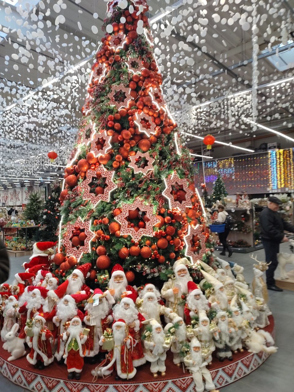 У ТЦ «Епіцентр» у зоні продажу ялинкових прикрас, декоративних новорічних статуеток та пластикових ялинок встановлено велике новорічне дерево, декороване іграшками, гірляндами та навколо якого зібралися десятки Святих Миколаїв та Санта-Клаусів усіх розмірів.
