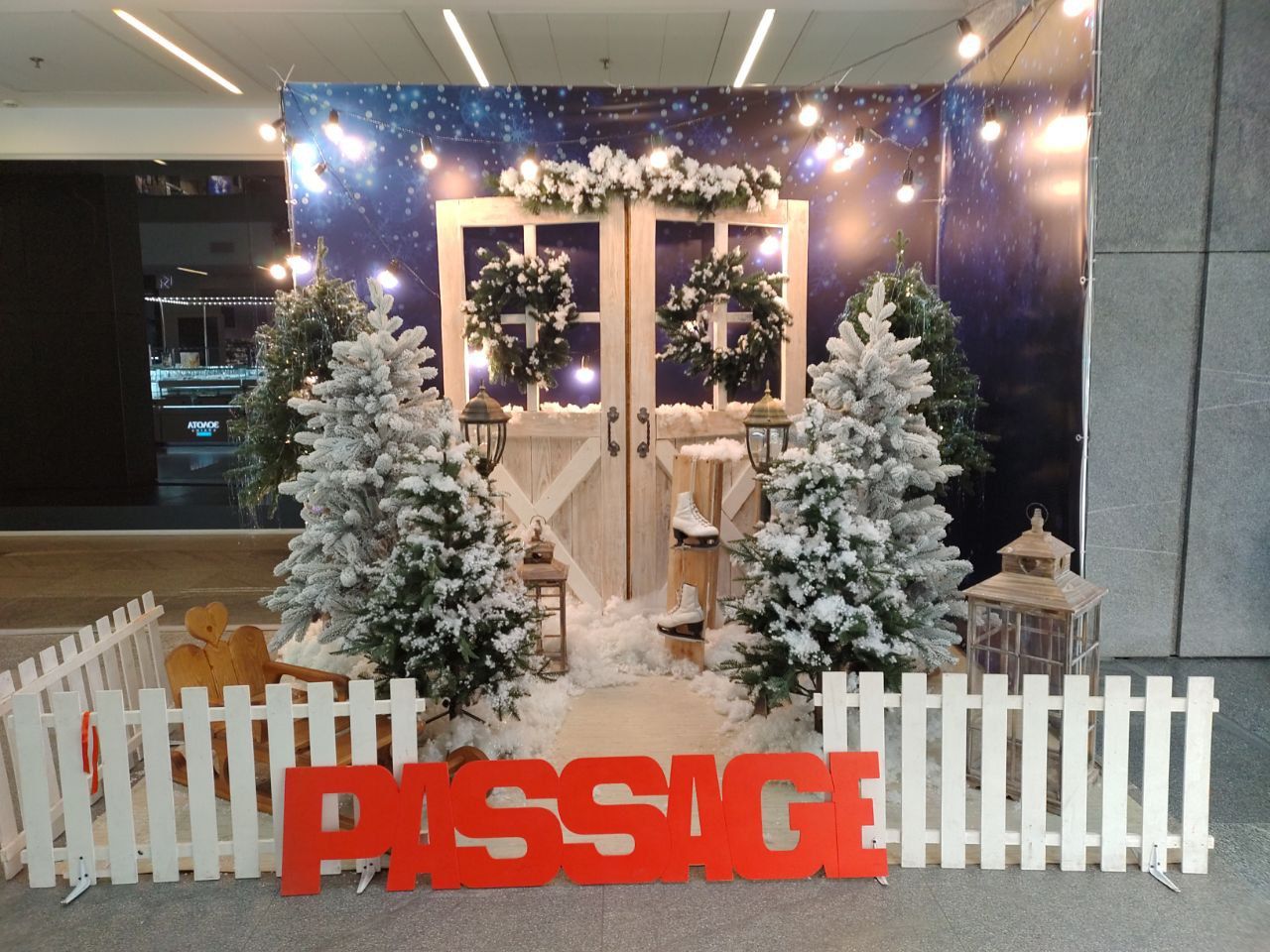 У самому «Пасажі» встановлено цілу фотозону з ялинками, ковзанами, штучним снігом та різдвяними віночками.