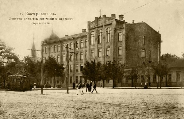 Зображали на листівках столітньої давнини та нинішній Будинок Спілок. Але тоді це було Училище товариства піклування про жіночу освіту і сьогоднішня будівля дуже віддалено нагадує те, якою вона була на початку минулого століття. Виною тому – воєнні дії під час Другої світової війнт та різні реконструкції після неї.