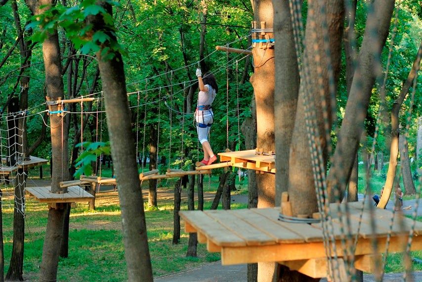 У Дніпрі мотузкові парки є у парку Глоби та Шевченка. Вони оснащені трасами різної складності. На кожній із них є певний набір перешкод, які потрібно пройти. Кожному учаснику видається шолом та страховка. Траси розташовані на різній висоті над землею. У середньому подолання однієї траси займе 30 хвилин. Вартість атракціону – від 450 грн за двох.