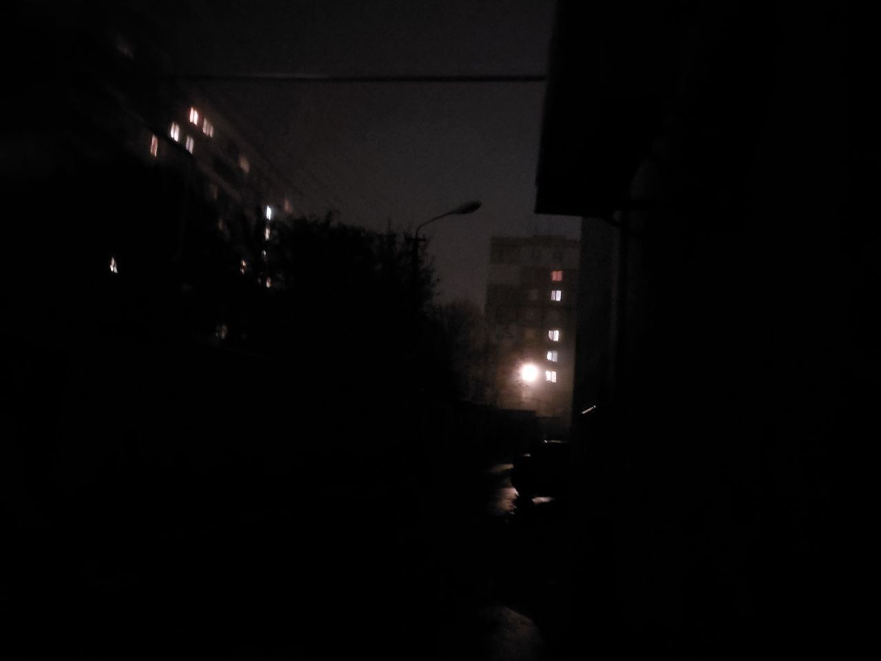 У темних подвір'ях люди підсвічують собі дорогу ліхтариками на телефоні. Найсвітліше поблизу дороги, тому пішоходи стараються ходити на головних вулицях, звертаючи у дворища тільки біля своїх будинків.