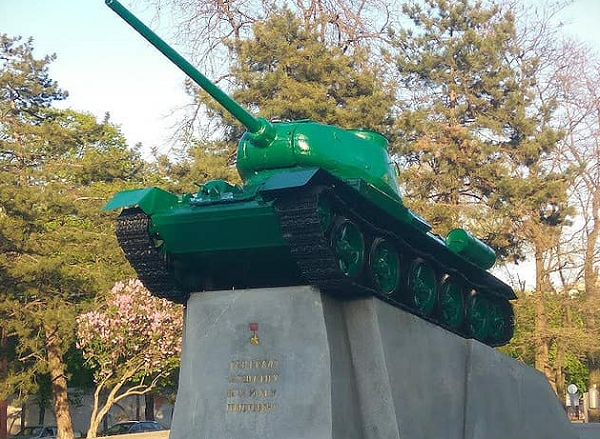 З'явився він на постаменті 1945 року. 1967 року його вирішили реконструюватись і танк було замінено на нинішній Т-34. З того часу танк із постаменту нікуди не перемішали, тільки інколи оновлювали його колір.