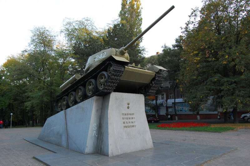 Сьогодні у Дніпрі з перехрестя двох проспектів прибрали пам'ятник генералу Юхиму Пушкіну, який місцеві мешканці знають просто як «Танк». Журналісти dnepr.info вирішили згадати скільки років ця машина вже знаходиться на постаменті, як раніше виглядата та коли його встановили у Дніпрі.