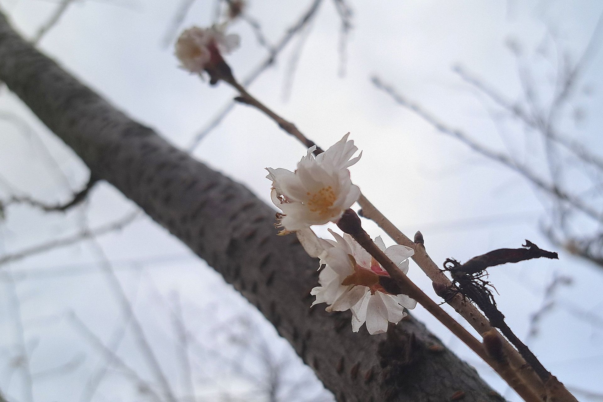 Схоже тепер сакури квітнутимуть тричі на рік. Попри те, що на календарі 1 січня, погода останніми днями була аномально теплою. Після сніжного Різдва Новий рік ми зустрічали з "плюсами" за вікном. На це відреагували рослини та дерева, які вже вдруге за холодний сезон почали розпускатися.