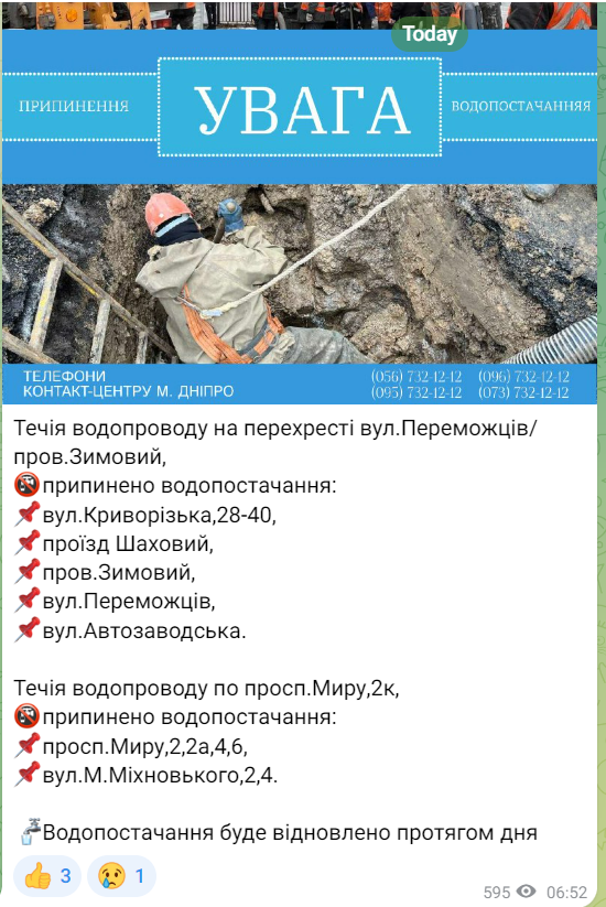 А через течію водопроводу на просп. Миру, 2к без води залишилися мешканці: