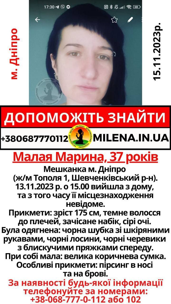 У Дніпрі безвісти зникла 37-річна Марина Малая.