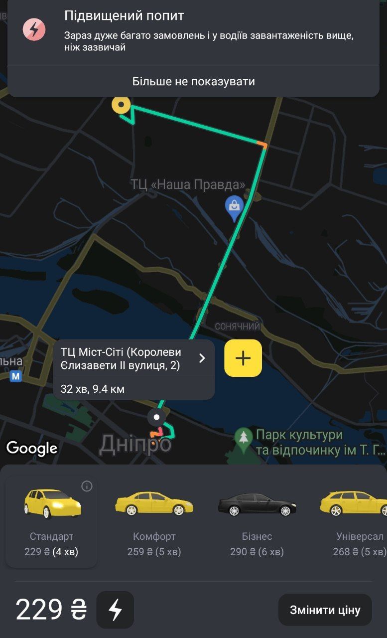 У додатках сервісів таксі зазначається, що зараз є підвищений попит та зросла кількість замовлень.